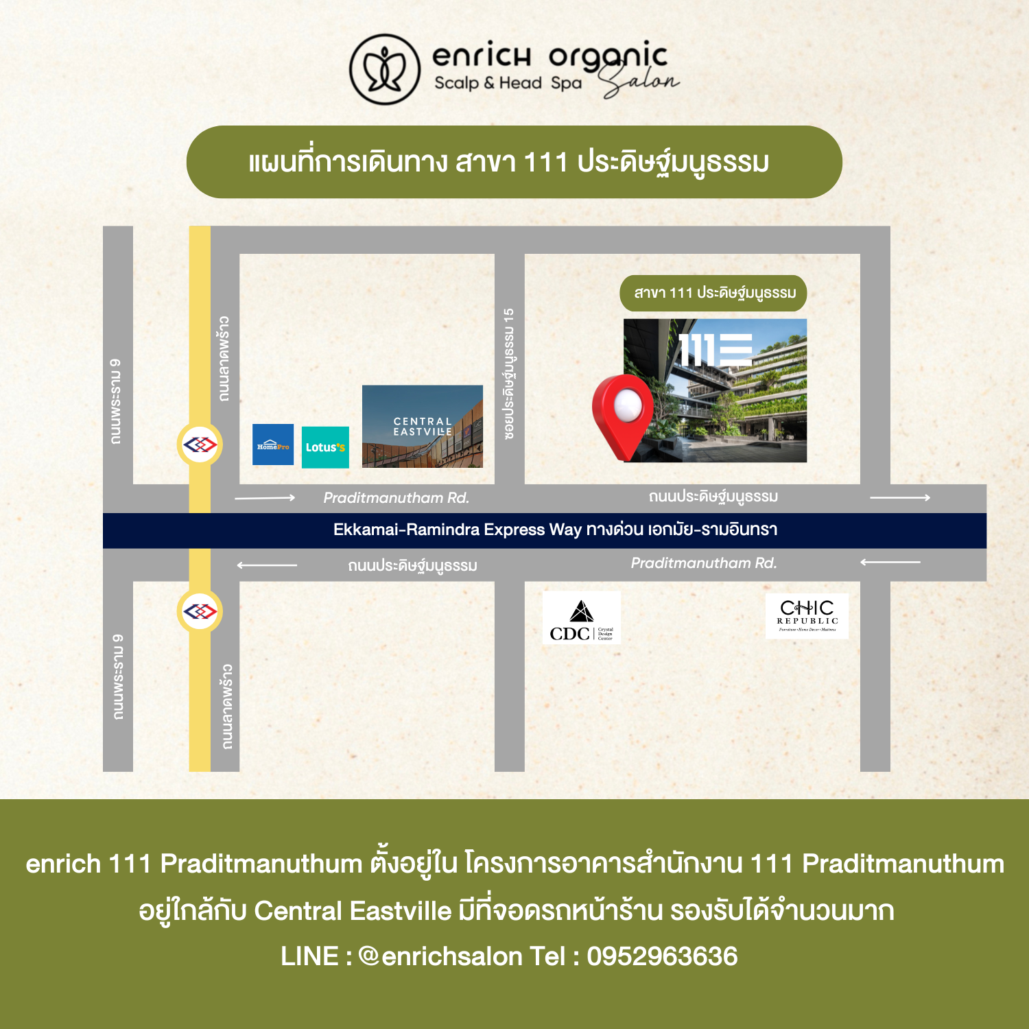 ใครหาร้านทำผมเลียบด่วน ต้องแวะ! Enrich Organic Salon สาขา 111 Praditmanutham